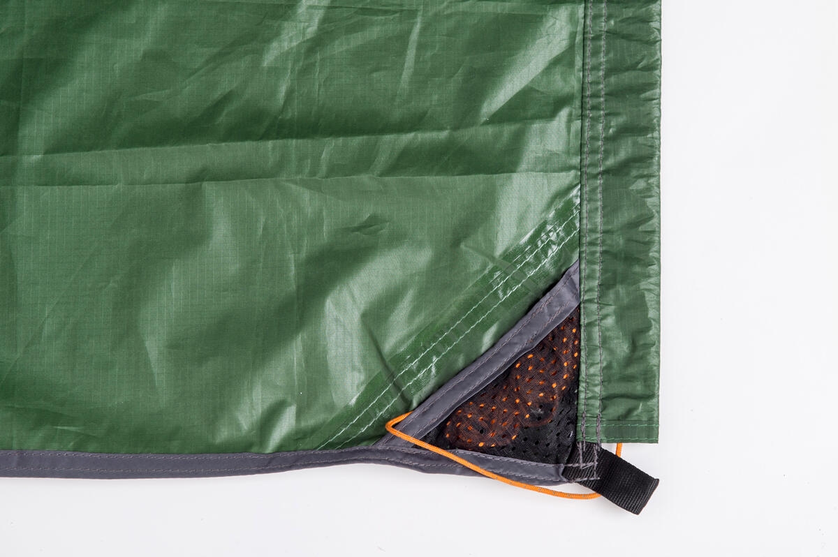 Ook in de praktijk bewijst deze ondergrond zijn waarde. Gebruik hem bijvoorbeeld onder je hangmat als droge plek om ’s ochtends op te staan terwijl je je schoenen aantrekt. Zolang de ondergrond droog is gebleven gedurende de nacht, stap je comfortabel op een schone en droge onderlaag. Je kunt de Hammock Floor eenvoudig direct onder je hangmat ophangen met het geïntegreerde ophangsysteem, of hem gebruiken als grondzeil door hem vast te zetten aan de 4 bevestigingslussen (haringen niet inbegrepen). Hierdoor is hij geschikt voor vrijwel iedere hangmat en elke kampeeropstelling.