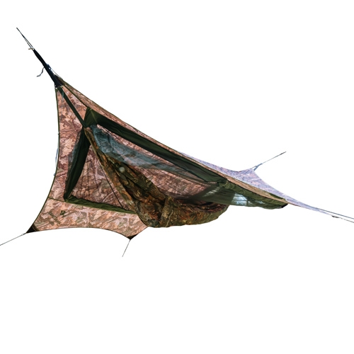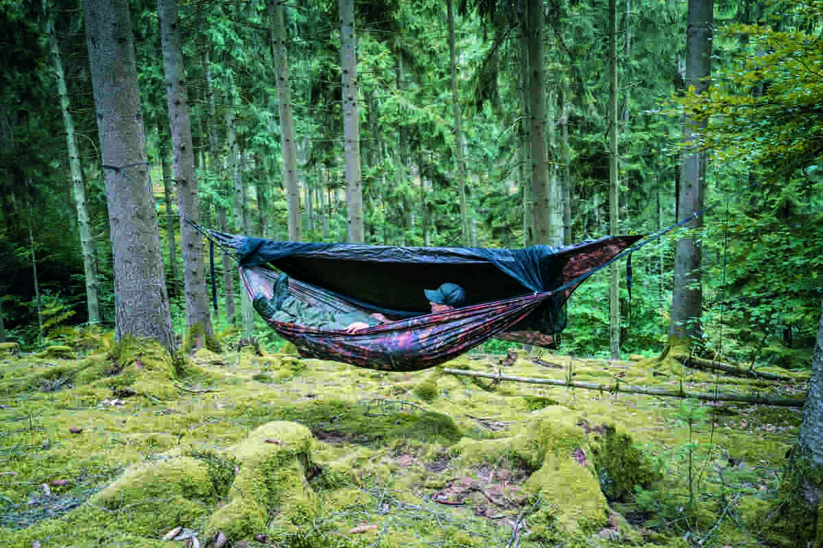 De Traveller Camp Forest is veelzijdig inzetbaar. Je gebruikt hem klassiek als hangmat tussen twee bomen, maar je kunt hem ook als tarp opzetten door de hangmat omhoog te trekken. Daarnaast is het mogelijk om het geheel op de grond te gebruiken als bivaktent wanneer er geen bomen beschikbaar zijn. Zo ben je voorbereid op elke situatie in het veld.