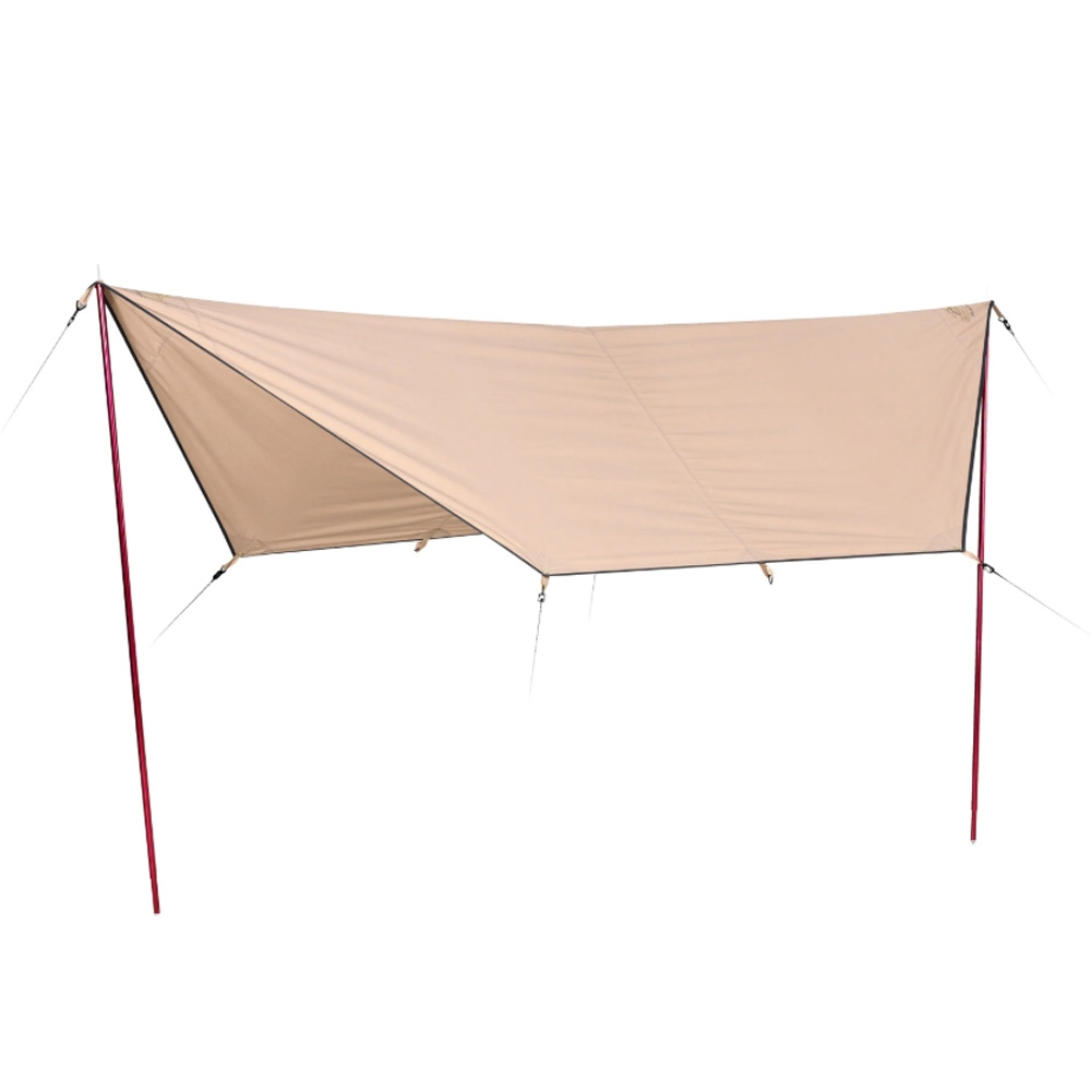 Het doek is gemaakt van technisch ripstop katoen, een hoogwaardige materiaalsoort die bestaat uit 65 procent polyester en 35 procent katoen. Deze combinatie zorgt ervoor dat je profiteert van de sterke en sneldrogende eigenschappen van polyester, terwijl het katoen bijdraagt aan het ademend vermogen en een aangenaam binnenklimaat. Hierdoor is de tarp duurzaam, slijtvast en comfortabel in gebruik gedurende het hele seizoen, zelfs bij wisselende weersomstandigheden.