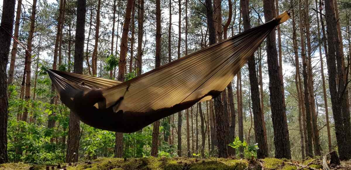 De hangmat is gemaakt van ultralicht ripstop nylon van 20 denier. Dit materiaal is ademend, sterk en voelt prettig aan, waardoor je comfortabel kunt rusten, zelfs na een lange dag onderweg. Ondanks het lage gewicht kan de hangmat een belasting tot 130 kilogram dragen. De kleur Dark Olive zorgt ervoor dat de hangmat mooi opgaat in de natuurlijke omgeving, wat prettig is tijdens kamperen in het groen.