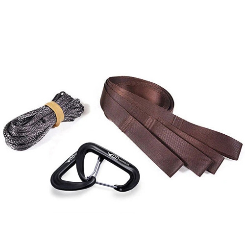 Inclusief: 2 x 180 cm DD Whoopie Slings, 2 x 200 cm DD Tree Huggers, 2 x DD Hammock Karabiners.