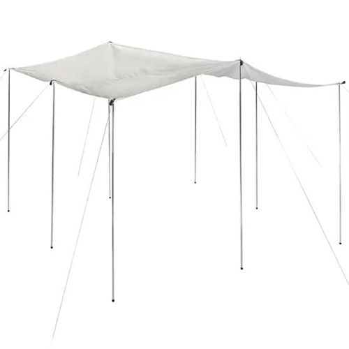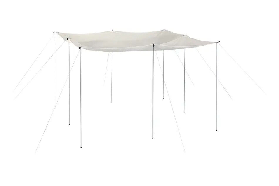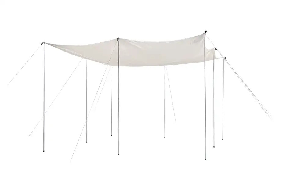 De Groenberg Skygge Tarp L wordt geleverd met scheerlijnen en een handige opbergzak. Deze tarp wordt zonder tarpstokken en zonder haringen geleverd.